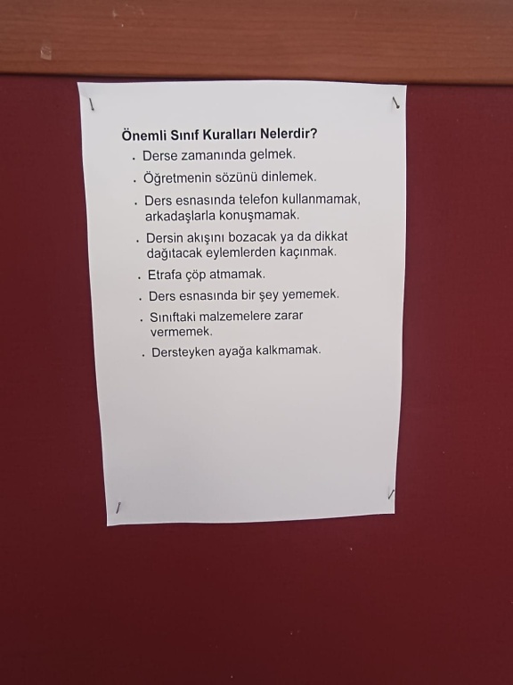 Öğrencilere, sosyal kuralları öğretmek ve uygulatmak amacıyla Sınıf İçi Sosyal Kurallar Belirleme etkinliği düzenlendi.
